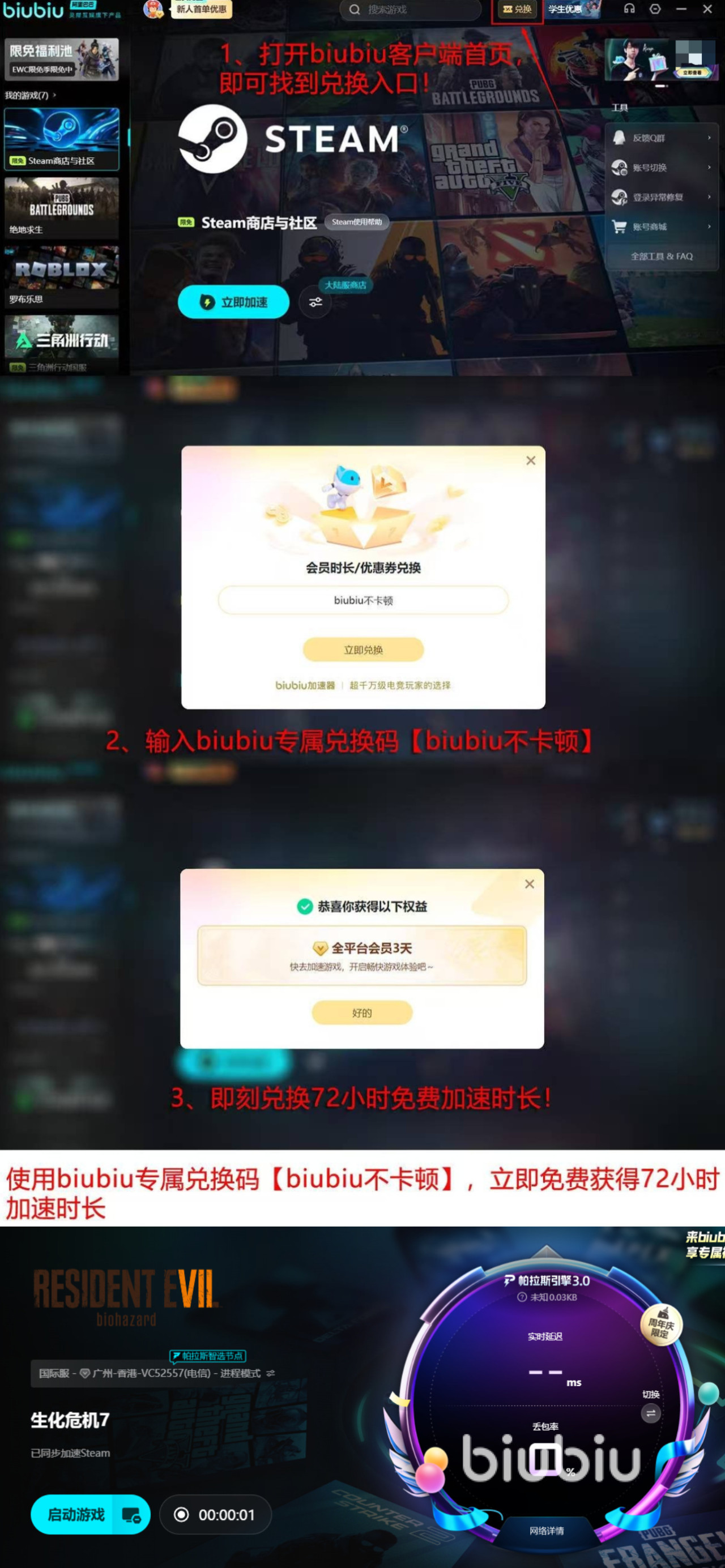 若是新人,那么使用该平台还可以享受到不少的福利,比如初次登录的用户可以得到24h的提速福利,平台自动发放,小伙伴们直接可以使用,无需领取。是平台还给所有人额外提供3日的福利时间,这个福利是小伙伴们自行领取的,只需在正确的入口用【biubiu不卡顿】拿即可。若是大家感兴趣,最近使用该提速平台还有不少福利,在冬促期间,小伙伴们是可以享受限免提速活动的,在12月18日到1月18日期间有大量的限免提速作品加入到限免加速池当中,像小伙伴们在使用steam去下载游戏时,也可享受到该福利。该游戏商店在biubiu内是长期拥有限免福利的。