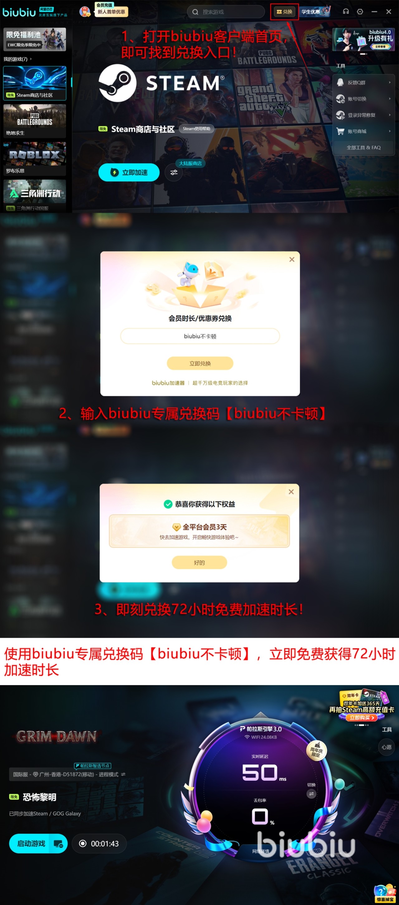 小编知道大伙儿对新工具总会犹豫,不过biubiu可以免费体验呀!新用户注册,立马就送24小时的免费加速时长。要是觉得确实有用,输入口令【biubiu不卡顿】都能再领到3天的免费加速,这个新老用户都能领。万一在加速过程中遇到任何问题,别担心,点开软件右上角那个耳机图标,客服认真负责,反馈非常及时,保障你使用无忧。