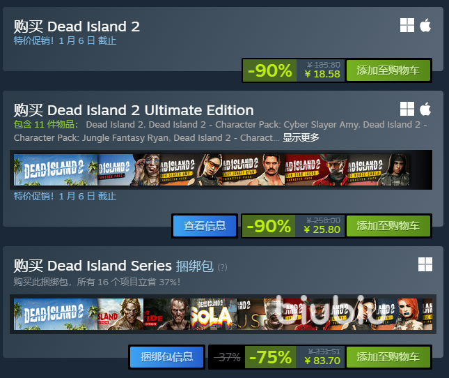 2025年12月23日 17:16 来源:魅影义皮卡丘死亡岛2史低多少钱?喜欢玩丧尸系列作品的小伙伴不少,都想必了解过死亡岛2,但是一直没有赶上促销活动,所以未必体验过,本期小编就给大家带来该作品的相关折扣信息分享,感兴趣的用户可以了解一番,趁着当下steam的优惠活动可以直接选择入手,能够少花不少钱。
