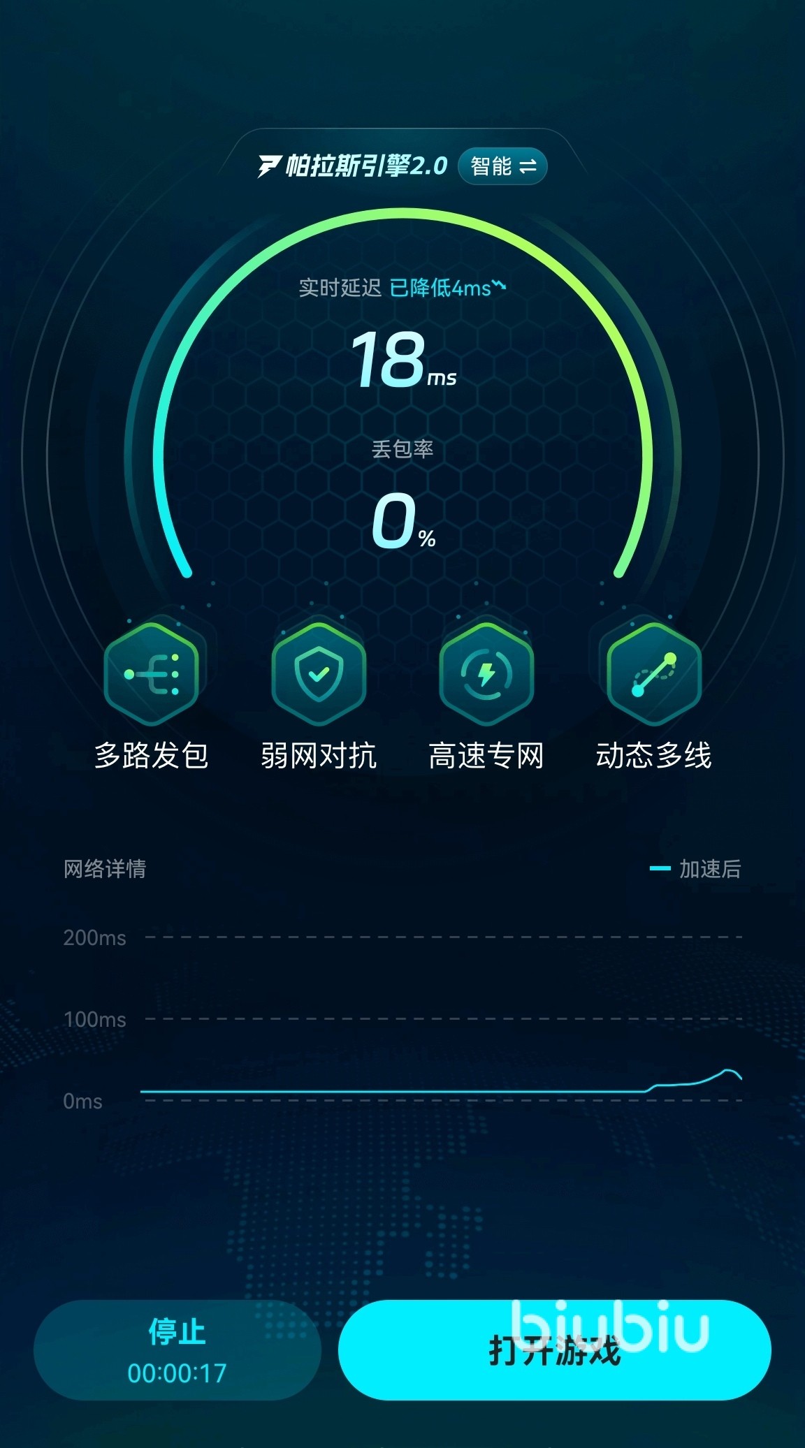 搞清原因就好办了。你可以先顺手清掉一些缓存文件,把好久不用的App卸载掉来腾出空间;把后台所有无关的程序都关干净,然后彻底重启一下游戏。如果这么操作之后,闪退还是会在加入朋友房间或地图加载到一半时跳出来,那十有八九就是网络不够顺畅了。这种情况下,我一般会推荐大家用一下像biubiu加速器这种专门处理游戏网络问题的App。它对《饥荒》手游的联机状况挺有针对性的。简单来说,它的作用是帮你重新规划一条从手机到游戏服务器的“数据高速路”,自动避开拥堵和容易丢包的普通路段,让连接变得更稳,这样因网络抽风导致的闪退自然就少多了。