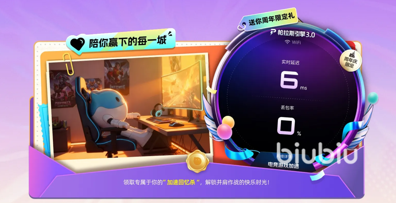 这么好用也是有原因的,其实biubiu找到的产品体验官就是XDD,这位可是拿到绝地求生冠军的职业电竞选手,当然知道高玩对FPS等高频对抗类游戏的网路需求是什么。最终升级核心为自研的帕拉斯引擎3.0版本,让大家享受到喜欢,理想的网络,可在路人局尽情绽放自己的风采,也能找志同道合的玩家一起参与全民赛事。