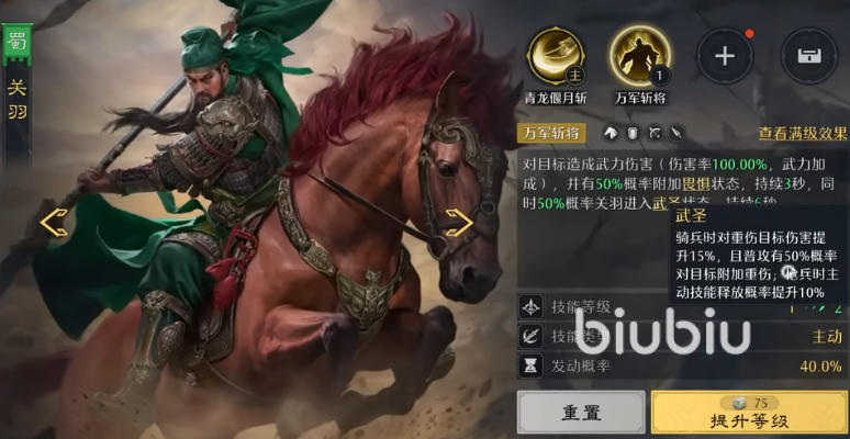 关羽作为二号位核心输出,推荐携带【斩将夺锋】与【夺神箭】。两战法协同触发重伤机制:当敌方叠加至三层重伤时,除每回合持续掉血外,还将承受70%攻击力削弱的虚弱状态。若额外配置兵法【长驱直入】,可提升关羽技能释放频率,增强连段稳定性;在3S级枪兵加成下,关羽还可激活【武圣】状态,技能发动率额外提升10%,大幅减少空技能概率,确保重伤层数快速叠满。