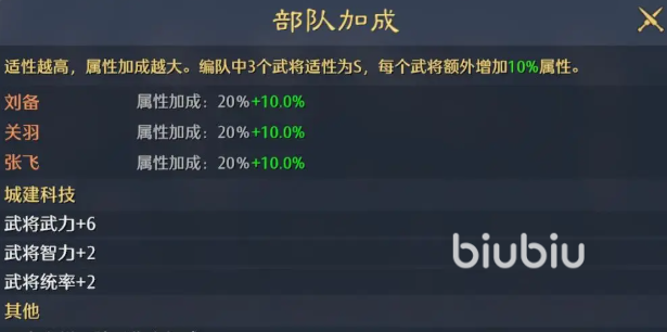 张飞驻守三号位,承担增益与重伤辅助职能,战法推荐【鼓破千雷】与【重创】。【鼓破千雷】可提升张飞自身攻击力及10%技能发动率,【重创】则专注为敌方叠加重伤层数。鉴于张飞战法格有限,装备选择应优先保障上述两战法的稳定释放。全队需统一配置3S级枪兵兵种,由此获得全属性30%加成,同时强化桃园三人组的兵种适配性,进一步加快重伤累积速度与虚弱覆盖率。