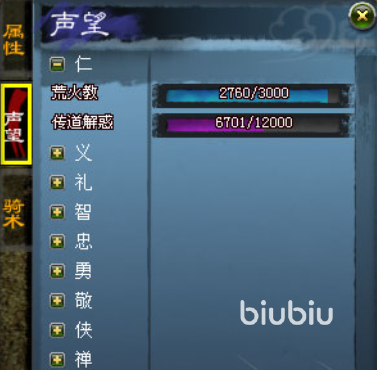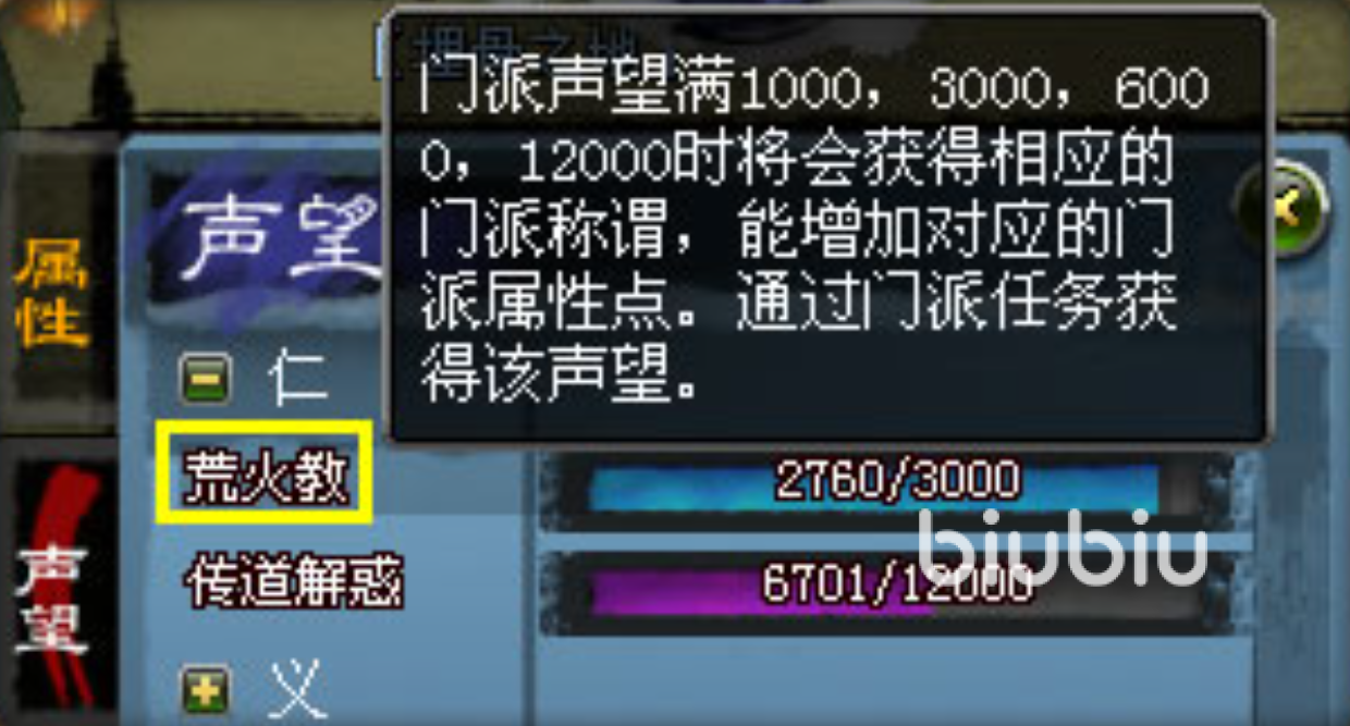 游戏内设有多类声望分支,涵盖“传道解惑”“仁”“义”“礼”“智”等传统价值体系命名的独立声望线。每类声望均绑定专属说明与成长反馈——例如加入特定门派后,达成对应声望阈值,可解锁该门派专属称谓;同时,部分门派属性加成将随该门派相关声望提升而动态增强,实现声望与战力的双向联动。