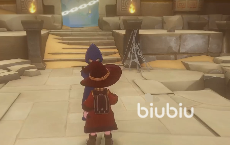 第三处守护地位于沙漠区域。关键线索为一口显眼的紫色巨锅。与其交互后进入炼制流程:需投入三块指定矿石(无种类限制,任意普通矿石均可),成功合成金钥匙。获得钥匙后,系统将引导至一处刻有符文的石壁前,使用金钥匙启动机关,石壁开启露出内部通道。