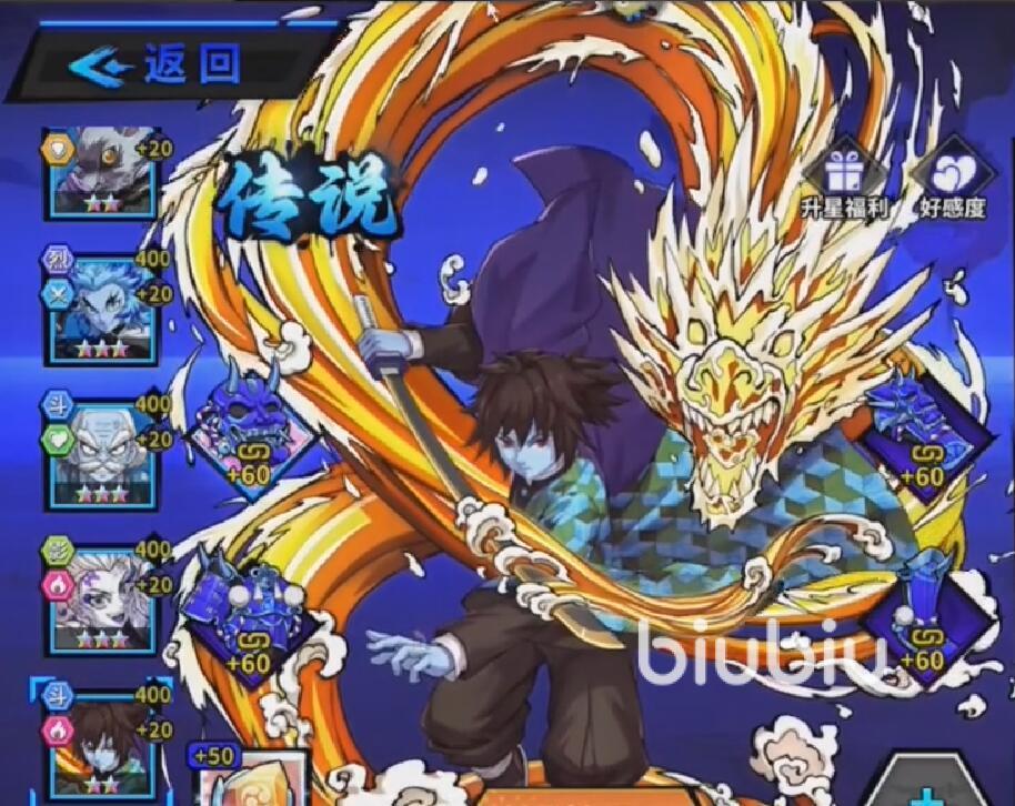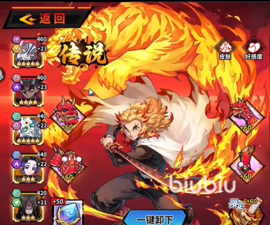 炼狱杏寿郎同属T0层级,专精群体持续伤害。作为炎柱继承者,其核心技能“炎之呼吸·九之型 炎虎”可对敌方全体施加三层“灼烧”印记,每层每回合造成基于攻击力12%的额外真实伤害,叠加至满层后触发爆炸效果。该特性使其成为裂系阵容无可替代的主C,常与拥有“领域增伤”类被动(如提升灼烧伤害30%)的角色协同作战,形成滚雪球式输出循环。