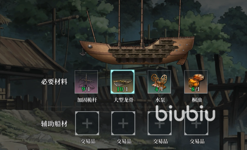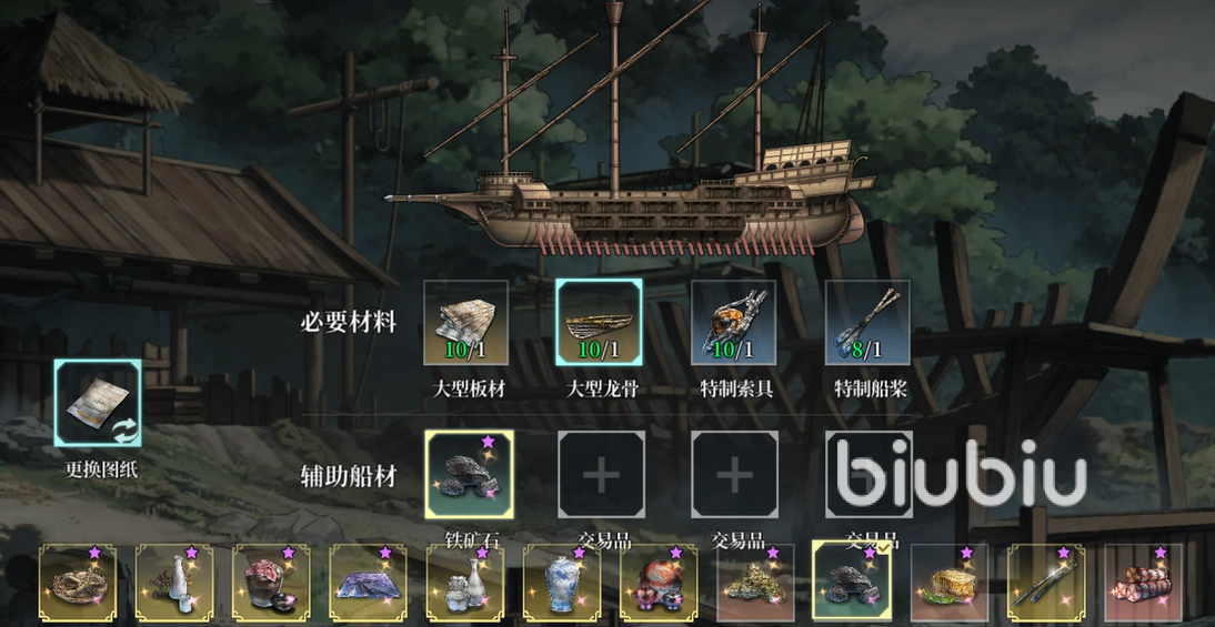 关键结论在于:船只最终形态在开始建造的瞬间即已确定,决定因素仅为所选船材品质与图纸类型,与是否添加交易品、添加何种交易品完全无关。若追求特定紫色船只,应优先确保龙骨、桅杆、帆布、板材均为极品品质,并在确认材料组合后、点击“开始建造”前完成存档,以便通过读档方式反复尝试。