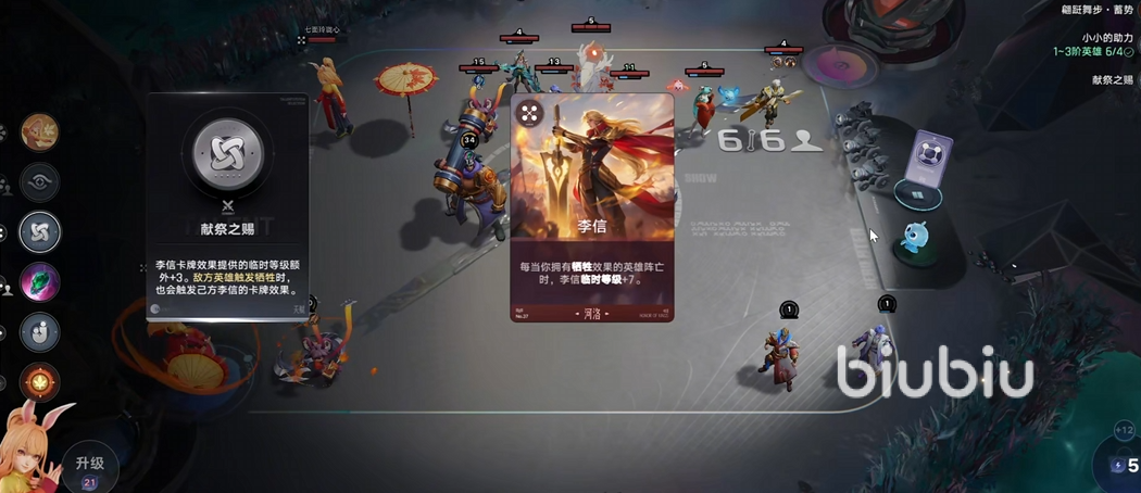 实战中,“牺牲流”是当前版本李信主流成型路线之一。当己方具有“牺牲”特性的友军阵亡时,李信可获得临时等级提升,直接增强基础属性与技能强度。推荐优先选用具备固有牺牲标签的英雄作为核心搭档,例如凯、花木兰、苏烈;同时可配置钟馗,其技能可为相邻单位赋予牺牲特性;再搭配太乙真人提供复活增益,进一步放大牺牲收益。起手阶段建议选用公孙离启动,利用其灵活部署能力快速构建前排牺牲结构。