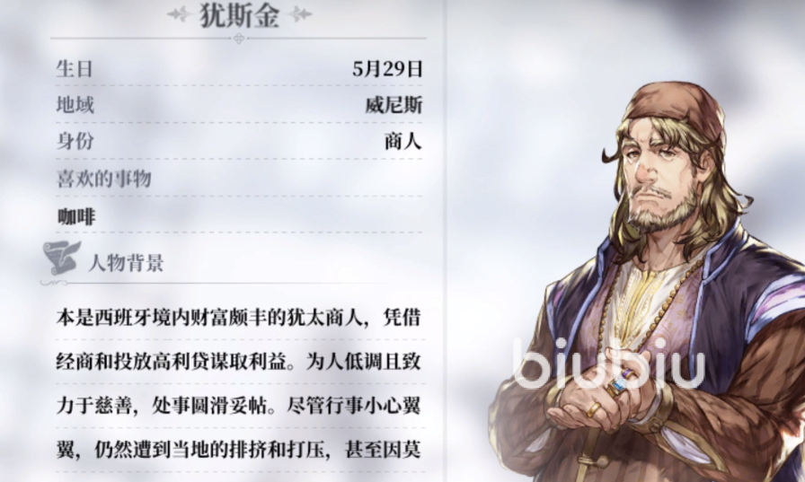综上所述,《风帆纪元》中的犹斯金是一位专精于资本运作的稀缺型船员。其犹太商人背景赋予其天然的商业敏感度与谈判优势,入队后可全面接管团队财务事务,在控制成本的同时放大贸易回报。尤其适合专注经济建设、追求稳定长期收益的玩家群体。建议贸易流玩家务必规划好主线进度,及时前往威尼斯完成关键剧情,将这位高性价比的商业专家纳入麾下。