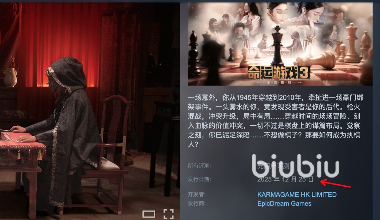 据官方公告确认,《命运游戏3:王者棋局》将于2025年12月25日登陆Steam平台,同步首发简体中文与繁体中文版本。本地化覆盖完整界面、全部字幕及所有游戏内文本,确保两岸三地及海外华语玩家均能沉浸于原汁原味的叙事与交互体验之中。