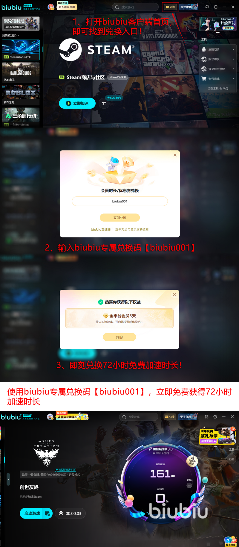 现在新用户可以享受双重免费加速时长福利,在首次下载加速器,注册+登录之后,可免费24小时。还能通过通用兑换码【biubiu001】在加速器的页面领取3天的免费加速时长。两种方法可以叠加使用,免费的时长最终可以达到96小时。作为pero战队指定加速器,这款加速器的专业性,早已得到职业电竞选手的认可。另外还有帕拉斯3.0引擎,可以优化游戏数据的传输,从根源上解决网络延迟等问题。