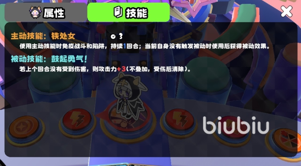 阿兰娜的核心机制围绕“未受伤害”这一状态展开:若上一回合未承受任何类型伤害(包括玩家攻击、事件扣血、手牌直接伤害等),则本回合自动触发被动效果,获得+3攻击力加成。其主动技能不仅提供战斗与陷阱双重免疫,更具备强制触发被动的能力——即无论上回合是否受伤,开启主动技后立即获得+3攻击力,实现稳定输出前置条件。需特别注意的是,该免疫效果不影响主动使用攻击型手牌,因此在规避风险的同时仍保有主动压制能力。