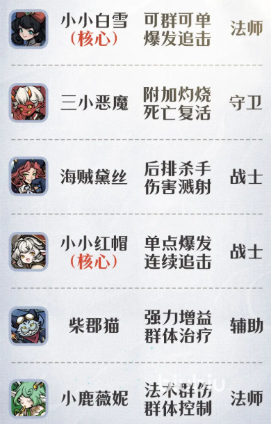 追击流以高频自动追击为核心运转逻辑,推荐配置为:白雪、红帽、恶魔、柴郡猫、爱丽丝/小鹿薇妮。该组合在前期资源有限时即可成型,角色获取门槛低、技能释放无需复杂操作。其中,白雪具备对低血量目标的强制锁定与追击加成机制,当追击次数累积至阈值后,可显著提升终结效率;恶魔拥有复活技能,在承担嘲讽与承伤职能的同时,为队友提供稳定攻击力增益,强化整体输出循环;红帽施加寒冰状态,有效压制敌方暴击率与防御数值,限制其关键技能释放;柴郡猫负责净化我方负面效果,在面对多控阵容时保障行动稳定性;爱丽丝则提供暴击率提升与单次复活能力,与恶魔形成双重容错保障,大幅提升残局收割能力。