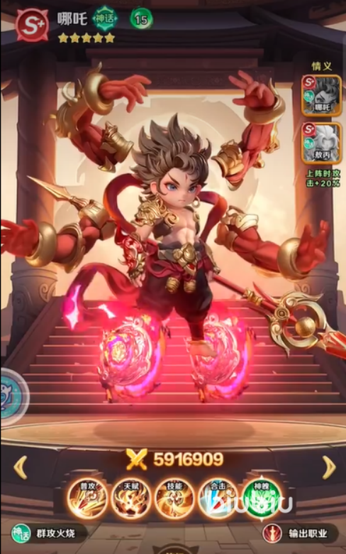 哪吒的核心战斗逻辑围绕“多层叠加灼烧”展开:其主动技能可对敌方目标施加可叠加的持续掉血状态,每层灼烧独立结算伤害,且层数上限可观。随着战斗时间推移,灼烧层数不断累积,单位时间内造成的总伤害呈显著增长趋势。这一特性使其在面对高血量目标(如推图Boss、竞技场坦克型对手)时表现出极强的压制力——前期伤害平稳,中后期爆发力持续攀升,形成典型的“越战越强”节奏。