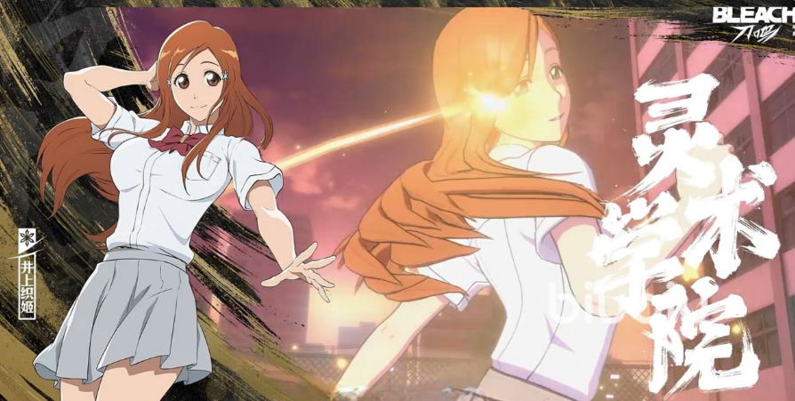 井上织姬为纯辅助型角色,核心职能为治疗与减防。普攻虽伤害偏低,但可运用光之力持续削弱敌方护甲值;当自身生命值低于30%时,被动技能自动激活护盾,大幅提升生存容错率。角色形象以蜜糖色长发与琥珀色瞳孔为标志性特征,契合原作设定。