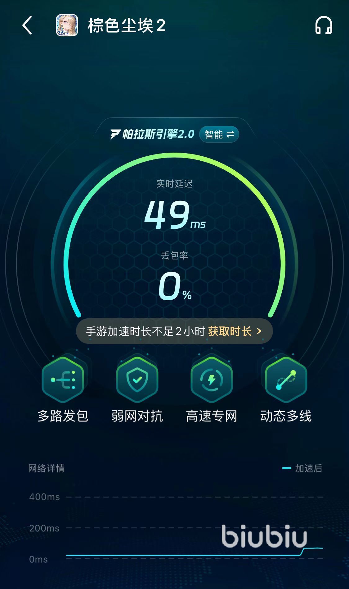 这么一看能玩的还不少,皮肤道具都吸引人,不过相应的在线时间是有增加的,有些人无法满足长期稳定在线的需求,那就需要想办法了。有我们行业综合实力排名第一的biubiu,提供的服务有质量的,阿里巴巴灵犀互娱大厂加持,加速效果强劲,服务对象包含海内外热门游戏,那就查找这款手游的服务吧。
