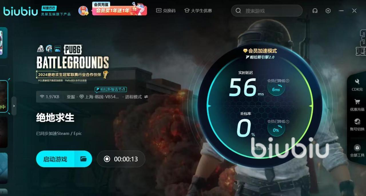 作为长期支持《绝地求生》生态的加速服务,biubiu加速器已深度适配多个官方服务器环境,涵盖国际服、测试服及主机平台等不同运行场景。用户可根据实际登录渠道,在对应加速页面一键启用,操作流程简洁直观。