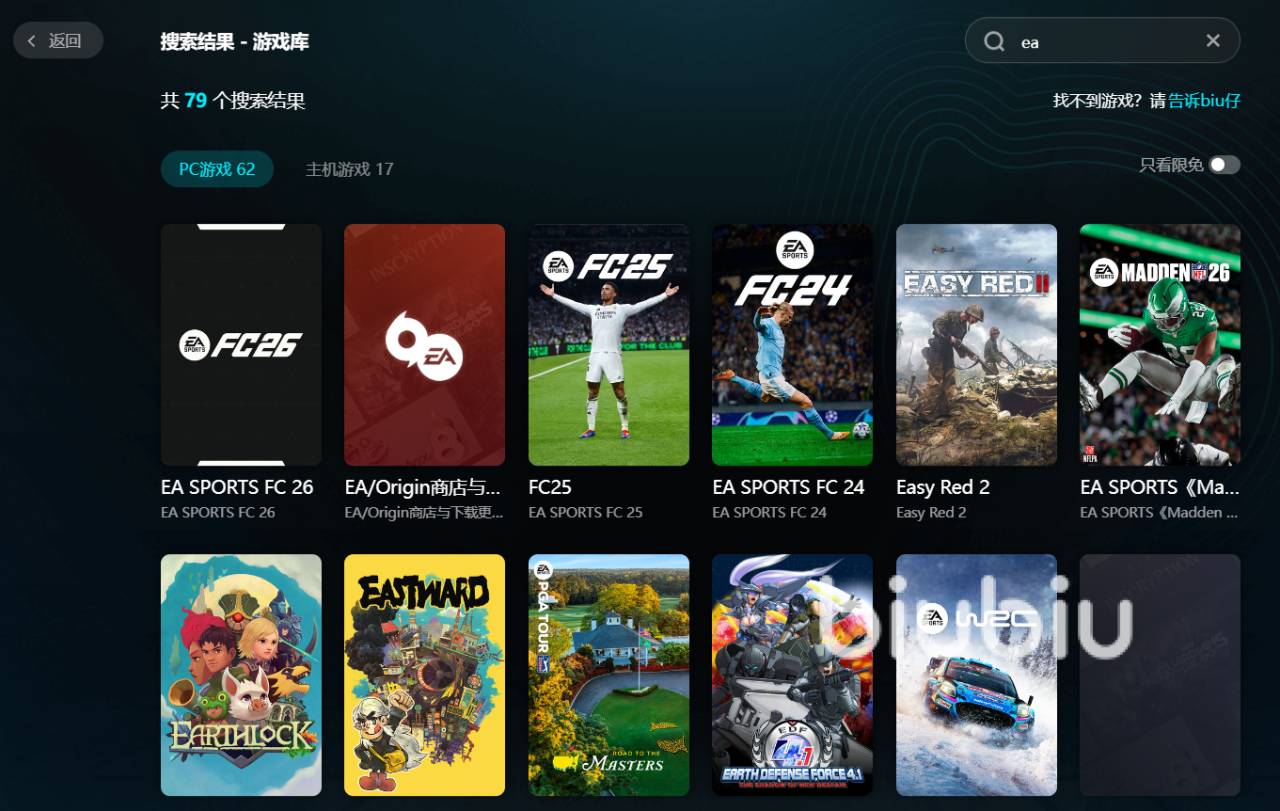 打开biubiu直接在搜索框里找“EA App”或者“Origin”,然后选中它。这不是只针对某一个游戏,而是把整个平台的服务都给优化了,比如你登录账号、加载好友列表等,还有后台下载更新,全都能变得更顺畅。只需要这么一次,就等于铺好了一条稳定的网络基础路,后面再用就省心多了。
