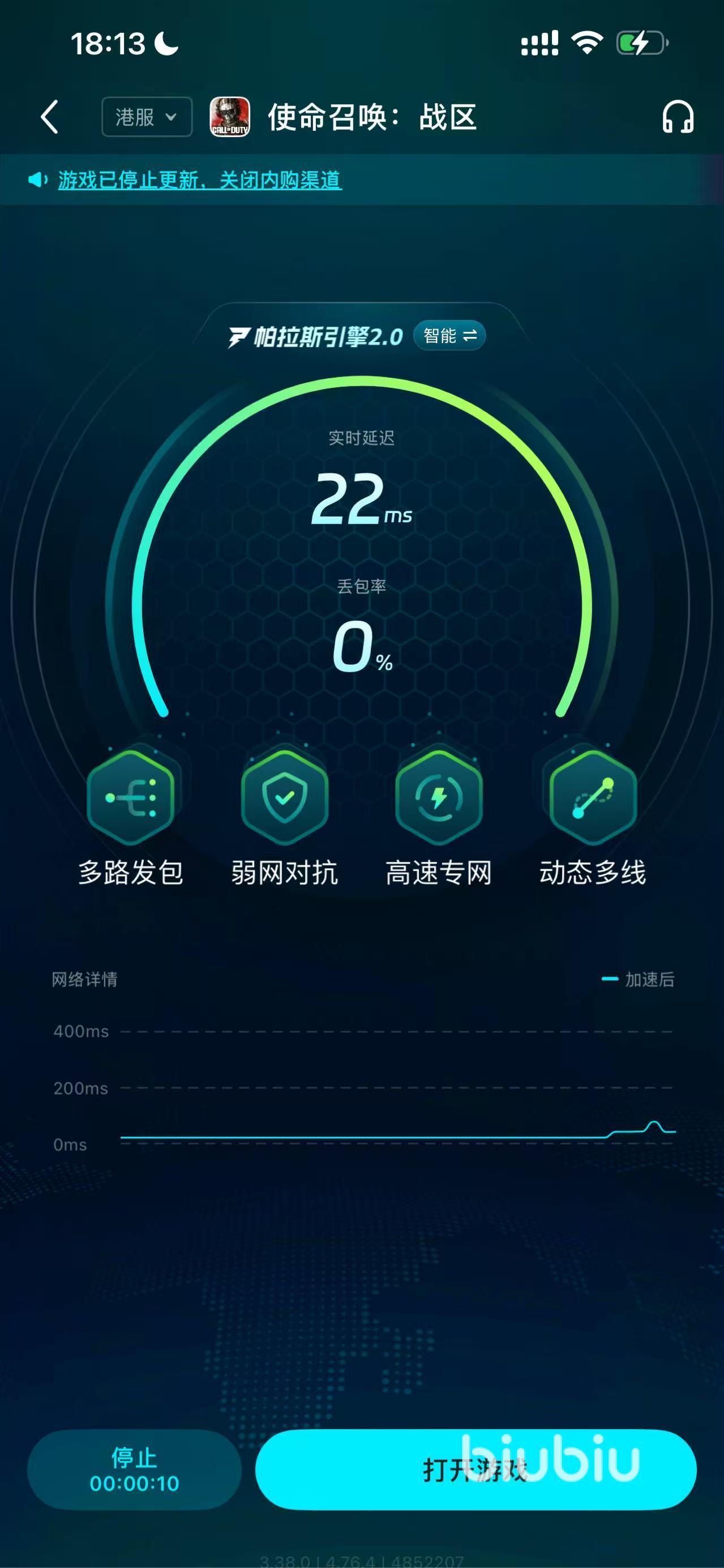 不过最大的可能性还是网速过差,不稳定的话就很容易发生意外。这里更推荐各位使用综合性能最佳的biubiu,它有着阿里巴巴灵犀互娱大厂技术加持,可以持续稳定地帮助大家正常作战,防止闪回到桌面上了,内心也愈加安稳!很多人不想花钱加速,不怕!biubiu手游加速限免,大家可以尽情地游玩不同类型的大作,让自己尽情地嗨玩,没有什么顾虑!毕竟它可加速的大作类型很多,轻松覆盖全球;就算是想玩一些小众的海外佳作,也是能办到的!