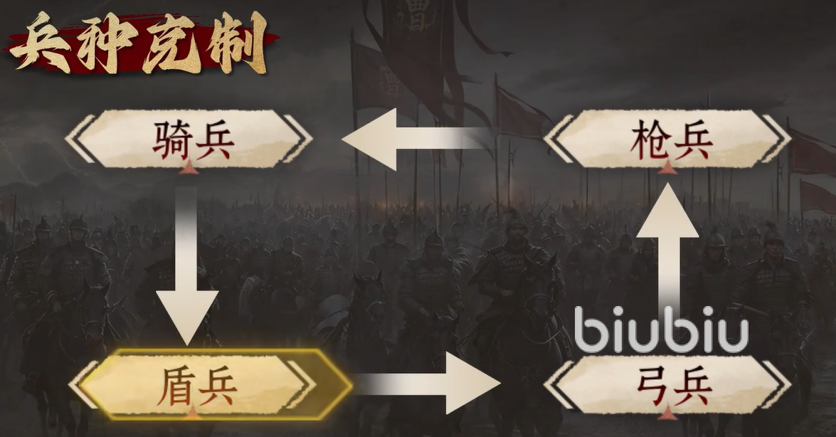 游戏内兵种克制关系遵循明确闭环:骑兵克制盾兵,盾兵克制弓兵,弓兵克制枪兵,枪兵反制骑兵。被克制方在实战中将承受约30%的额外战损。例如,敌方阵型以盾兵为前排固守时,投入骑兵实施侧翼突袭,可快速瓦解其防线稳定性;若遭遇敌方骑兵高速突击,则优先部署枪兵前置,激活突阵技能并叠加减速效果,能有效抵消其机动优势,大幅压缩其冲锋空间与输出窗口。