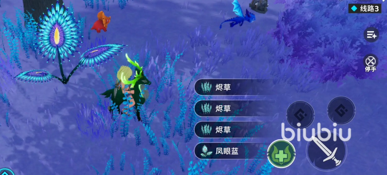 食材来源具有明确场景区分:浆果、蜂蜜等植物类资源需通过野外采摘获取;兽肉则为击败敌对生物后的固定掉落物。后期可通过烹饪系统将基础食材升级为复合型料理,例如提升生命上限百分比、增强技能释放频率或延长减伤持续时间等。所有增益效果均需在战斗前完成投喂,生效后不可中途替换。除食材外,各类花卉、草本植物亦为可采集对象,部分稀有品种仅在特定气候带或时间节点出现。