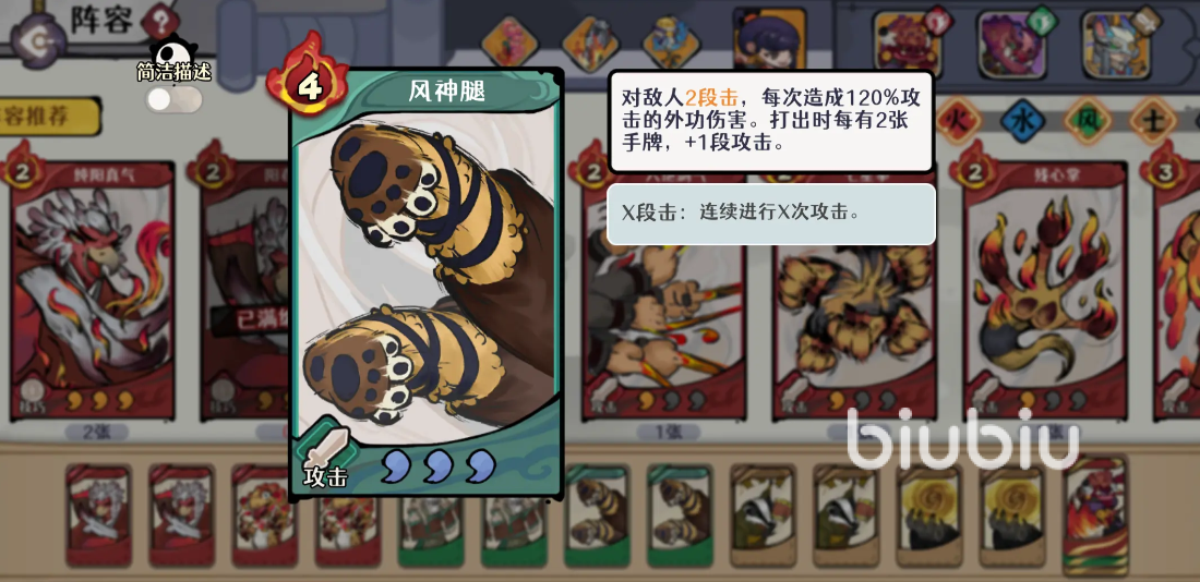 风神腿并非孤立生效,其伤害潜力高度依赖卡组协同。例如,与“利剑如电”组合可加速怒气积攒,配合“震龙吼”则能进一步抬升怒气上限,从而保障风神腿在关键回合稳定释放。这种联动机制使风神腿在回合制战斗中形成“启动快—衔接顺—爆发稳”的作战闭环,尤其适合应对需要速战速决的精英怪或限时关卡。