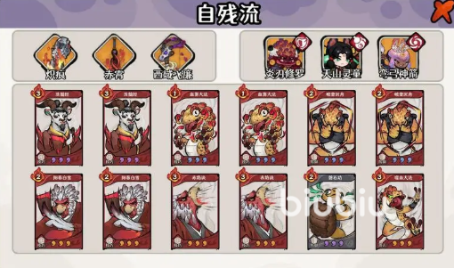 【自残流】——高风险高回报型阵容,以生命值为代价换取行动频次与输出密度。推荐搭配天山灵童、炎刃修罗、弯弓神箭。天山灵童的输出机制深度绑定自残状态,生命越低,技能倍率越高;弯弓神箭提供持续站场能力与压力分散效果,延长战斗续航;炎刃修罗则通过被动减伤与反伤机制,在低血量下维持队伍整体作战强度。该流派对操作精度与节奏预判要求较高,但一旦掌握其运转逻辑,可在单位时间内达成远超常规阵容的总伤害量。