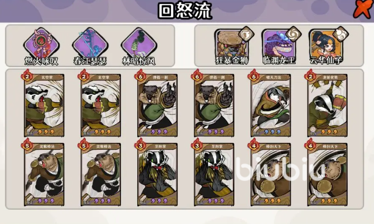 【回怒流】——中后期爆发型阵容,依赖怒气积累与技能联动实现数值跃迁。核心角色为临渊龙王、云华仙子、狂暴金狮。临渊龙王为终极输出单位,其大招伤害随怒气值线性提升,在怒气满额时可打出高额AOE或单体斩杀;狂暴金狮专精怒气消耗效率优化,通过卡牌效果缩短技能冷却,并为临渊龙王创造释放窗口;云华仙子提供关键卡牌回收与重置功能,保障高费技能反复可用。该流派容错率高,前期偏重防守与资源沉淀,中后期一旦怒气循环成型,便能实现翻盘式压制。