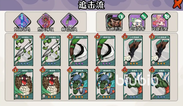 【追击流】——快节奏压制型阵容,主打高频外功输出与连击节奏维持。推荐角色组合为追风剑客、玲珑玉兔、凶神恶煞。追风剑客承担核心DPS职责,技能以多段外功伤害为主,攻速快、触发频率高;凶神恶煞布防前排,提供额外护甲,有效缓冲敌方爆发并保障后排生存;玲珑玉兔负责抽牌与回路补充,确保卡组循环顺畅,避免断档。该流派在前期即可形成稳定压制力,适合偏好主动进攻、追求回合内高效清场的玩家。