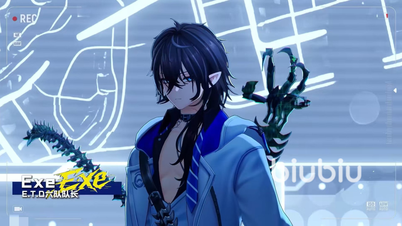 细节刻画方面,卡厄斯拥有显著的异瞳特征:左眼带有明显陈旧疤痕,右眼则保持常态。此类身体印记往往与过往关键事件深度绑定,在《异环》强调碎片化叙事与多重线索交织的框架下,极有可能成为后续剧情解谜的重要伏笔。此外,本次同步公布的ETD六队队长EXE与其构成鲜明对照——前者寡言内敛,后者活跃外放,二者在任务简报、战术协同及日常互动中预计会衍生出大量具有张力的对话场景与行为逻辑碰撞。