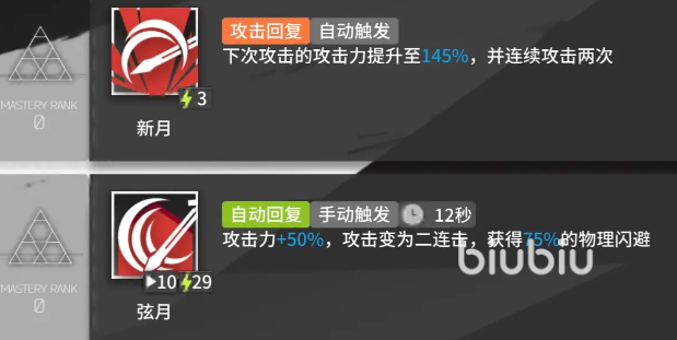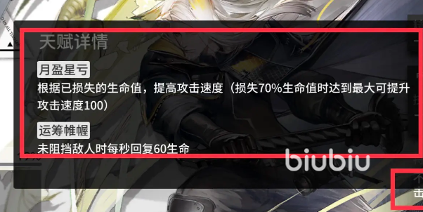 赫拉格的核心优势源于两项天赋:“月盈星亏”与“运筹帷幄”。前者使他在生命比例低于100%时获得攻速加成,当生命值降至30%时攻速提升至基础值的200%,实现残血状态下的输出质变;后者则赋予其脱离战斗后的持续自然回血能力,叠加普攻附带的吸血效果,使其在多数场景中无需依赖医疗干员即可维持生存循环。单部署位承载双维度作战能力,显著提升了编队效率与战术容错率。