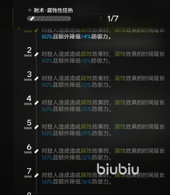 实战适配性强:面对高防御Boss时,腐蚀带来的43%减防可使团队整体DPS提升约30%;应对群聚敌人时,50%持续腐蚀伤害构成稳定AOE压制。技能触发门槛极低——只要命中并施加腐蚀效果即刻生效;配合具备群体挂毒能力的干员,可实现每30秒一次的规律性连锁触发,无需额外堆叠充能属性,新手与老手均可快速掌握使用节奏。