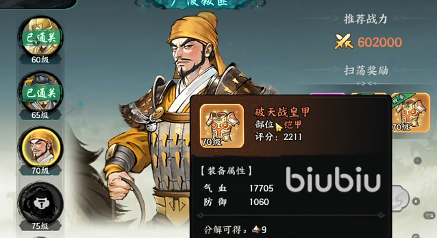 坐骑战力强化的核心环节在于装备适配。通过剿匪扫荡稳定产出的70级橙色防具“破天战黄甲”,是当前等级段最具性价比的坐骑专属装备。装配后,角色综合评分提升至2211,气血值增加17000点,防御属性额外+1000。需特别注意:该装备为70级独占产出,无商城直购或跨等级兑换渠道,稀缺性极高。无论所选坐骑类型为何,只要完成此装备绑定,生存能力即可实现质变,为后续挑战高难度副本奠定坚实基础。