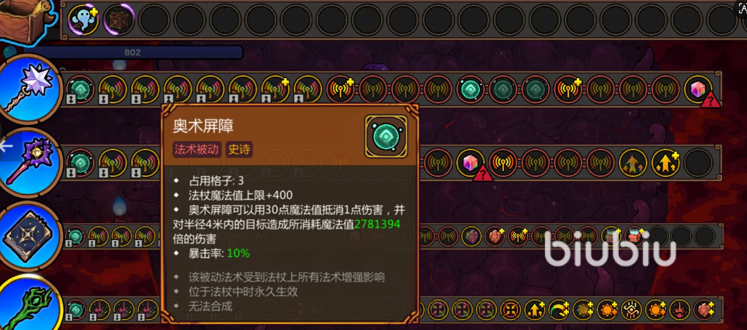 伤害体系构建方面,“克总之颅”拥有专属被动特性:每当持有法杖时,其总伤害额外提升相当于法杖最大魔法值10%的数值。这一机制与“奥术屏障”形成天然协同——法杖魔法值越高,屏障承伤能力越强,同时反哺克总之颅的瞬时与持续输出。在面对高难度野外BOSS时,高魔法值法杖带来的不仅是生存冗余,更是伤害转化效率的质变。配合“无尽药瓶”与“疗愈腰带”,可稳定维持魔法资源循环及生命续航,确保高强度技能释放不中断。
