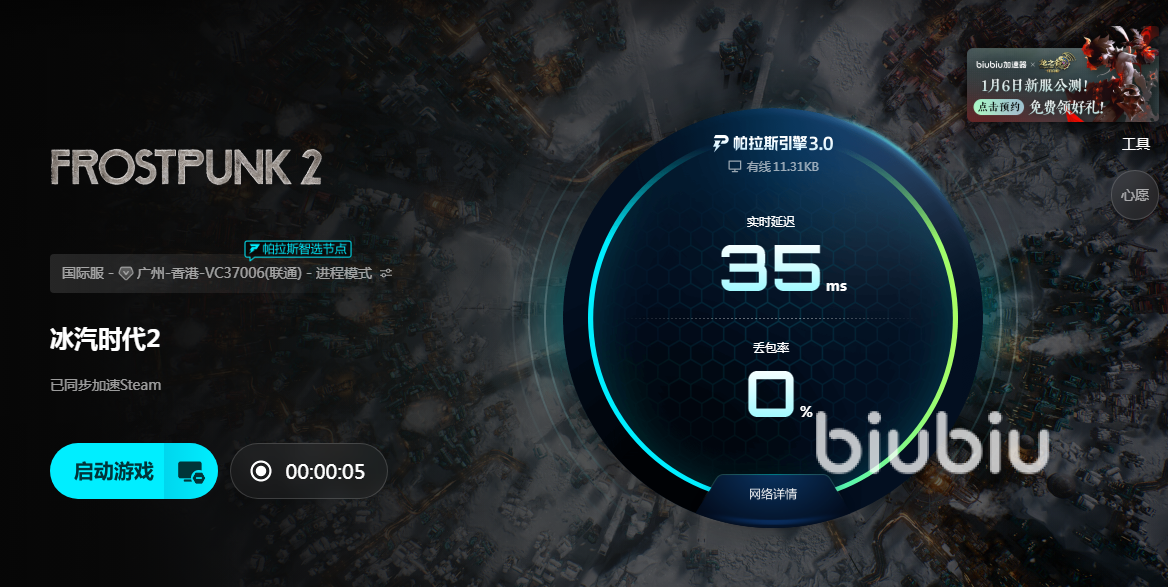 当然解决闪退的最关键处还是在于网络,有一个靠谱的加速工具就能帮助各位降低闪退、卡顿等问题的出现,维持大家在游玩时候的稳定性,不过大家要选择加速器一定随意去选,这边推荐首选综合能力第一名的biubiu加速器,它目前经历了重磅升级,给大家搭载了帕拉斯引擎3.0,并且还是PUBG冠军选手小叮当指定加速器,确保了大家能在这个冰天雪地的世界中,顺利建造出功能各异的区域,打造规模不同以往的城市,为市民的进步指明方向的技术,并在这一过程中感受规划的乐趣。