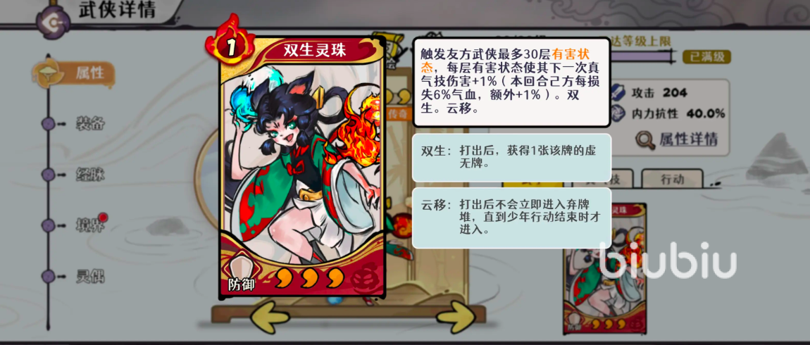 要充分发挥天山灵童的战术价值,需重点把握其两大核心驱动逻辑。其一依托武学卡“双生灵珠”,该技能效果与己方灼烧层数及当前气血比例强相关:当灼烧叠至5层且自身血量维持在约50%时,可稳定触发约50层真气增伤,构成自残流伤害爆发的基础阈值。该机制要求玩家主动调控承伤节奏,是整套体系运转的关键支点。