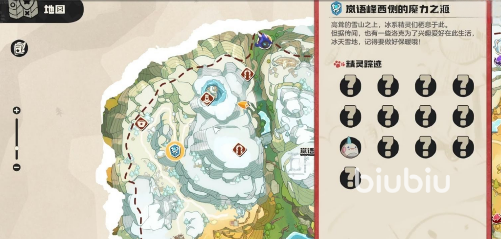 雪境位于游戏大地图西北方位,紧邻岚语峰西侧。若已完成前期主线任务,可直接使用已解锁的传送点抵达,大幅节省移动时间。进入区域后,建议携带具备滑翔技能的宠物——部分宝箱设置于悬崖边缘或高台之上,无滑翔能力将无法到达。区域内冰系野生精灵出没频繁,推荐配置至少两只火系主力宠物,如音速犬或火花,以应对属性克制带来的战斗压力,保障探索节奏顺畅。