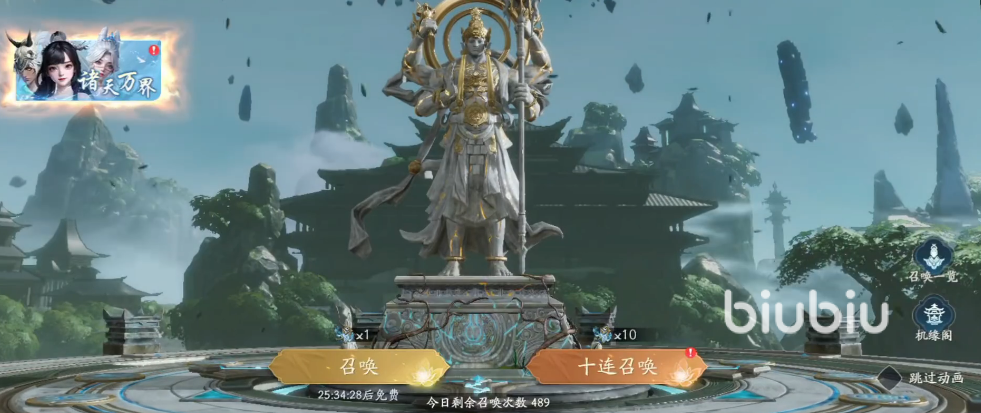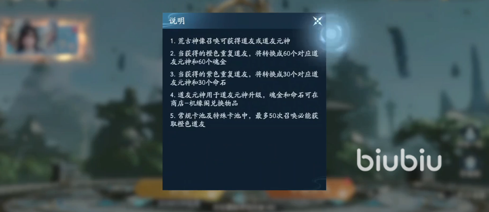 除抽卡本体外,游戏内置多项辅助养成系统。荒古神像升级可缩短免费召唤冷却时间,并同步提升角色战力,但该系统不改变任何抽卡概率;命石坊则支持将重复获得的角色转化为命石,用于定向兑换指定角色元神,显著加快主力角色培养进度。