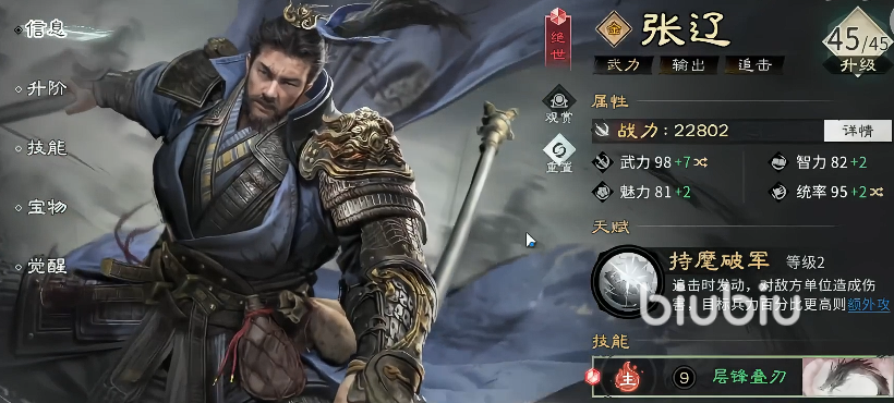 相较而言,张辽更强调即战力与稳定性。其普攻与技能均可触发额外攻击,单次行动常造成2次以上物理伤害,且默认优先锁定敌方后排单位,具备天然的破阵能力。该特性使其在面对带护盾或高防御目标时仍能维持可观穿透伤害。张辽的追击触发条件相对宽松,对搭配角色的依赖度较低,技能冷却缩减效果显著,输出空档极少。无论新手玩家还是策略经验有限的用户,均可快速上手并打出稳定输出。从强度分布看,张辽的性能表现前后一致,不存在明显疲软期,属于全周期可用的均衡型主力。