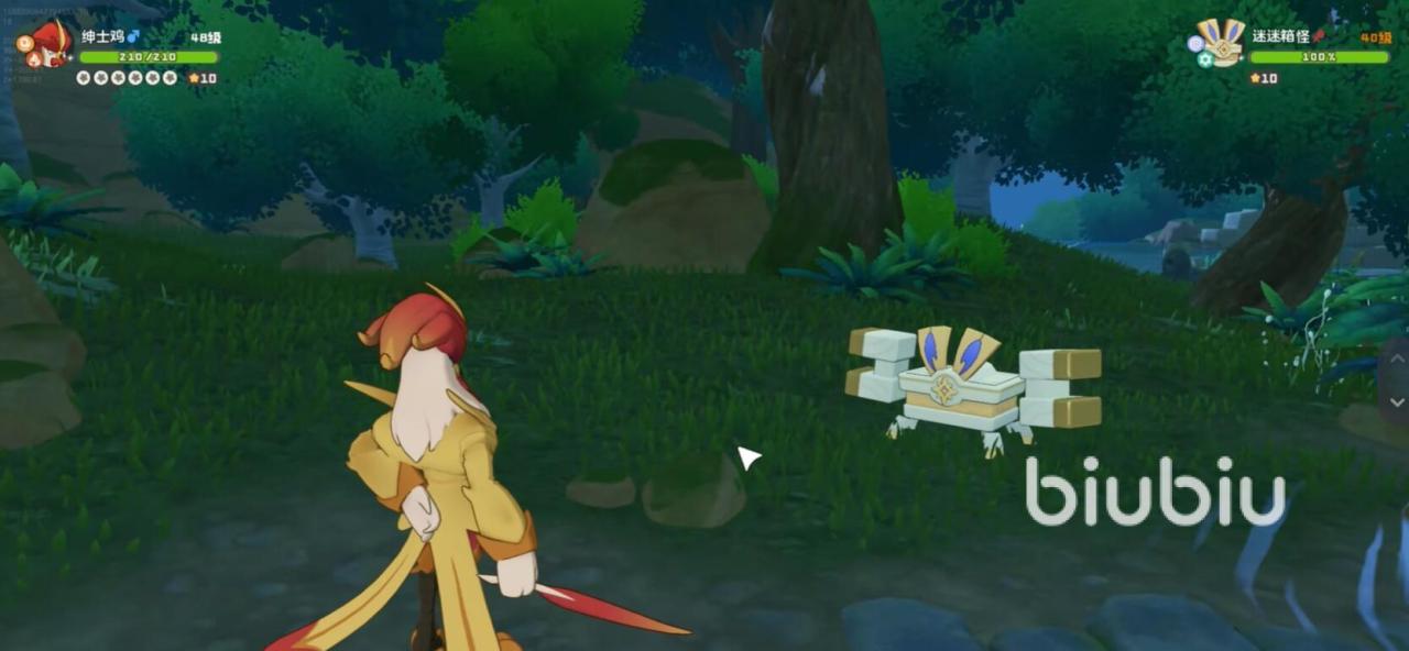 辨识迷迷箱怪的关键在于观察细节:左侧小型宝箱多为低等级伪装体,会在被靠近时主动释放防御技能;此时若携带火系精灵,可高效破防并开启。而右侧宝箱则更具迷惑性,多数为高伪装度的迷迷箱怪,必须通过战斗击败后才能解除伪装、获取内藏奖励。