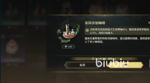 咖啡厅的核心价值集中于饮品所附带的可量化属性增幅。其中“量筒浓缩咖啡”为高优先级战术选择:饮用后全队生命上限提升4%,同时大招充能速率显著加快。此类双重增益在应对警局通缉要犯等限时高压任务时,往往成为扭转战局的关键变量。