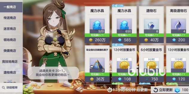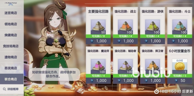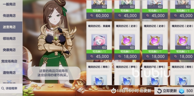 迷宫商店使用迷宫硬币,核心目标锁定指定史诗精灵记忆,确保目标角色可控获取;硬币富余时可补充随机史诗精灵记忆,提升阵容容错率;其余道具因转化效率偏低,建议跳过。领地商店产出的领地硬币具备较高稳定性,推荐优先兑换永恒花(用于角色突破)或高级抽奖扭蛋(提升稀有单位获取率),待上述核心资源满配后,再投入领地建筑升级以增强长期资源产出能力。