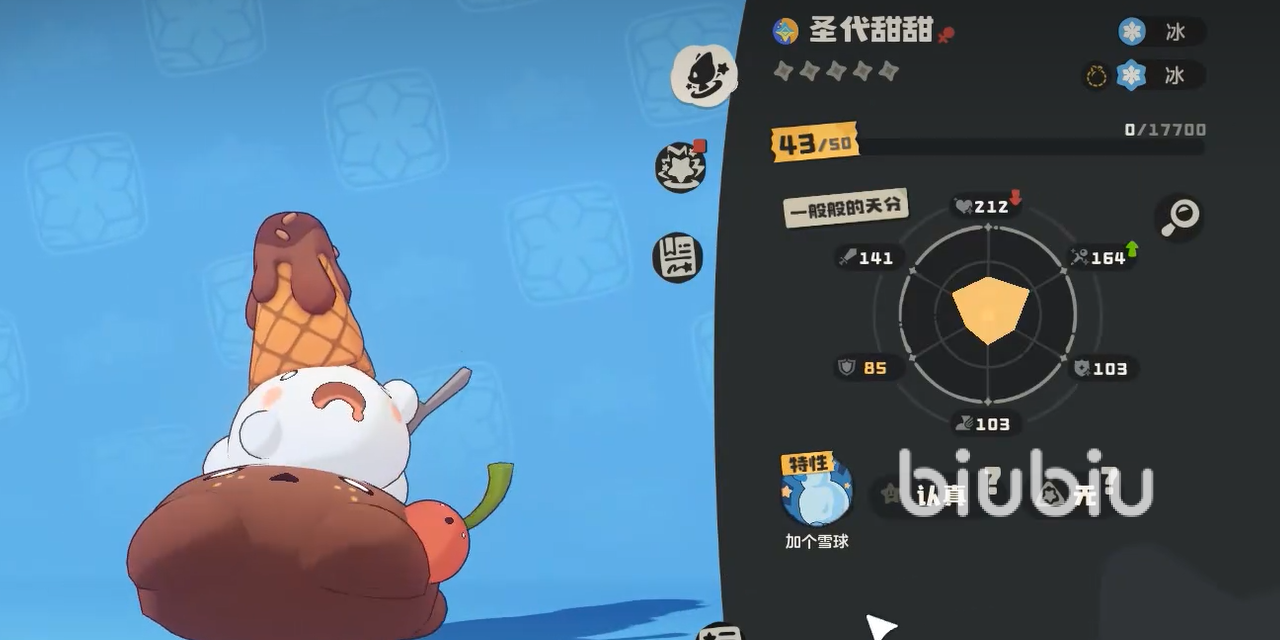 标准配置为:雪影娃娃、圣代甜甜、狐仙、雪灵、冰钻布鲁斯、獠牙猪。六者职能不可替代——雪影娃娃承担首回合强控任务,凭借高命中冰冻技能打断敌方起手节奏;圣代甜甜定位为功能型输出,以降低目标双防或攻击等级的削弱技能,为后续爆发创造数值优势;狐仙则发挥机动性特长,通过位移、干扰类技能扰乱敌方阵型,尤其针对高爆发阵容具备关键反制能力。