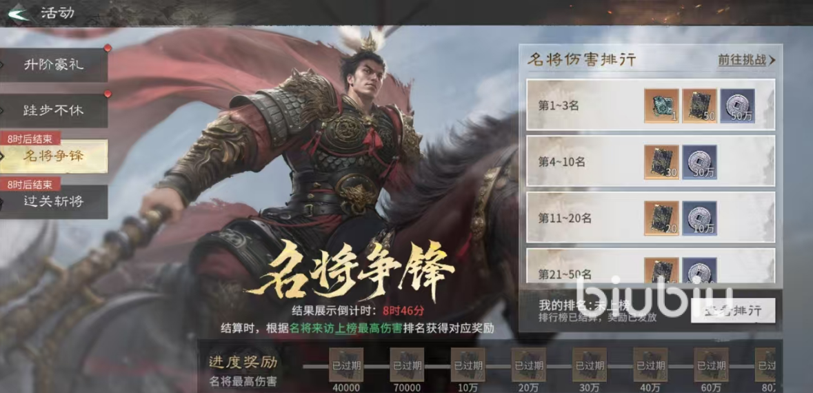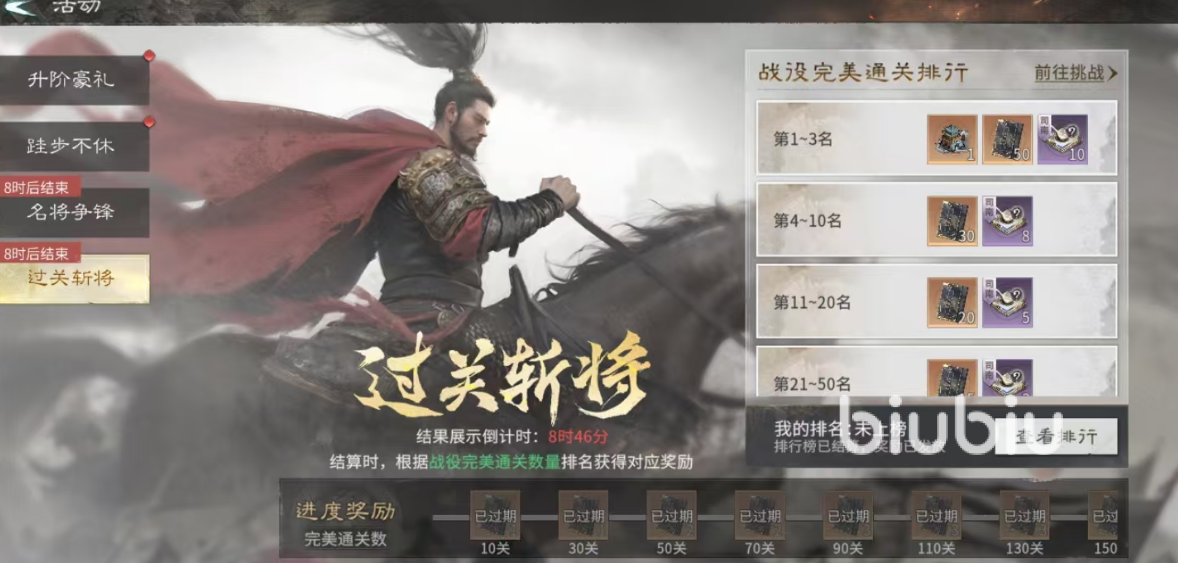 “过关斩将”为高完成度导向的副本挑战活动。达成完美通关(全员存活+时间达标)后,全服排名前3的玩家可获得限定武将皮肤及10个限定道具、50本技能书;皮肤不仅具备视觉辨识度,还可提升武将基础属性。第4至第10名则获得8个限定道具与30本技能书,有效支撑核心武将的关键突破节点。建议玩家复盘未获完美评价的历史关卡,动态调整阵容搭配与操作节奏,逐步逼近榜单前列。
