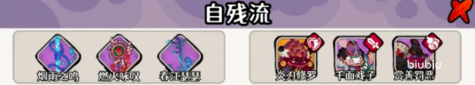 在自残流构建中,武侠角色的选择直接决定体系启动效率与持续输出能力。首推组合为“炎刃修罗+千面戏子+赏善惩恶”。其中,炎刃修罗具备高防护值与高自虐系数,可稳定解锁专属牌组【炎刃斩】,仅需少量怒气即可提升全队攻击力;其神兵被动亦为自虐类效果,是该流派的关键承伤与增益支点。千面戏子则承担核心节奏驱动职能,通过主动行动叠加全队自虐次数,并激活专属牌组【扶摇之舞】,显著提升全体灼热系数,与炎刃修罗的灼烧联动形成正向循环。赏善惩恶则兼具治疗与自虐双重功能,其专属牌组【气血连衡】支持自虐值二次释放,在续航与爆发间取得关键平衡。
