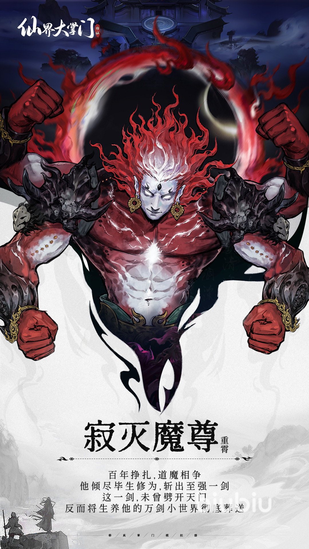 游戏中最具代表性的仙尊级角色为剑圣重霄与寂灭魔尊——二者实为同一人物在命运转折下的双重形态。剑圣重霄出身正道名门,天赋卓绝,潜心剑道数十载,自创无上剑术,曾凭一己之力斩妖除魔、庇佑苍生,被万剑门太上长老亲授真传。其核心战斗能力体现为:剑术神通可同步提升全队10%伤害输出与治疗效果;每回合可触发两次“护主剑阵”,在关键时刻为全体队友抵挡高达50%的高额多次伤害;持续攻击还可削弱敌方防御,随连击次数叠加,显著增强团队整体作战效能。