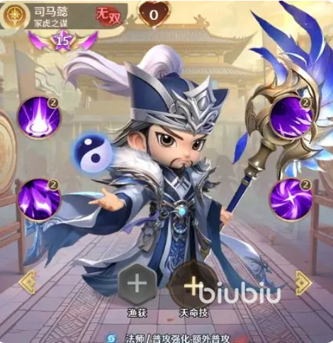 司马懿以高频普攻与混沌体系联动为核心打法。他可对敌方全体造成伤害,并在混沌阵营加成下额外获得普攻次数。其被动使每次普攻伤害提升33%;若目标已存在混沌类负面效果,则每次普攻还有40%概率追加“混沌侵蚀”。虽然该侵蚀效果数值与诸葛亮一致,但司马懿更依赖普攻链式触发实现伤害累积,因此推荐搭配攻速增益或连击类辅助,以发挥其持续压制优势。