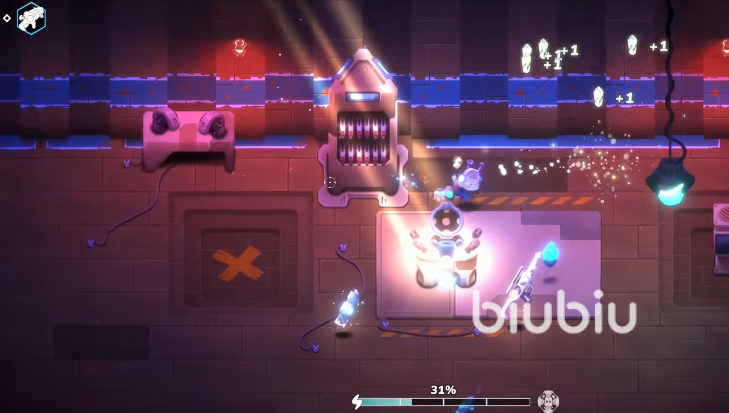 装备配置需兼顾短期战力与长期路线规划。芯片与武器不仅影响当前属性,更决定后续可解锁的终极技能槽位。关卡中随机生成的房间类型直接影响战术节奏:补给箱房间提供临时增益道具;技能点房间允许即时分配1点技能等级,建议优先投入核心输出或保命技能;空房间为安全通行区域;地雷房间则内置可交互布雷装置,合理利用地形引爆可对集群敌人造成群体减速与易伤效果。