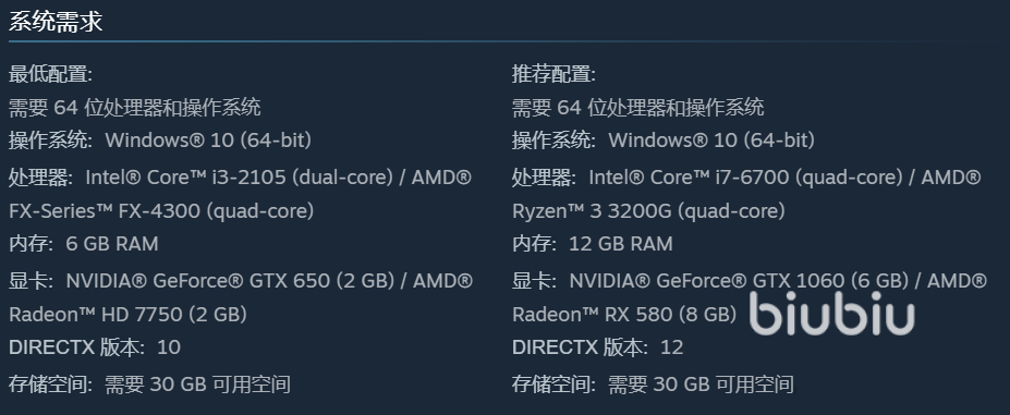 要开启这场人类保卫战,就要准备好Windows10操作系统,处理器得是英特尔酷睿i3-2105(双核);内存至少6GB RAM;显卡NVIDIA GeForce GTX 650 (2GB) 这个等级,而且得支持DirectX 10;还得留出至少30GB的可用存储空间。