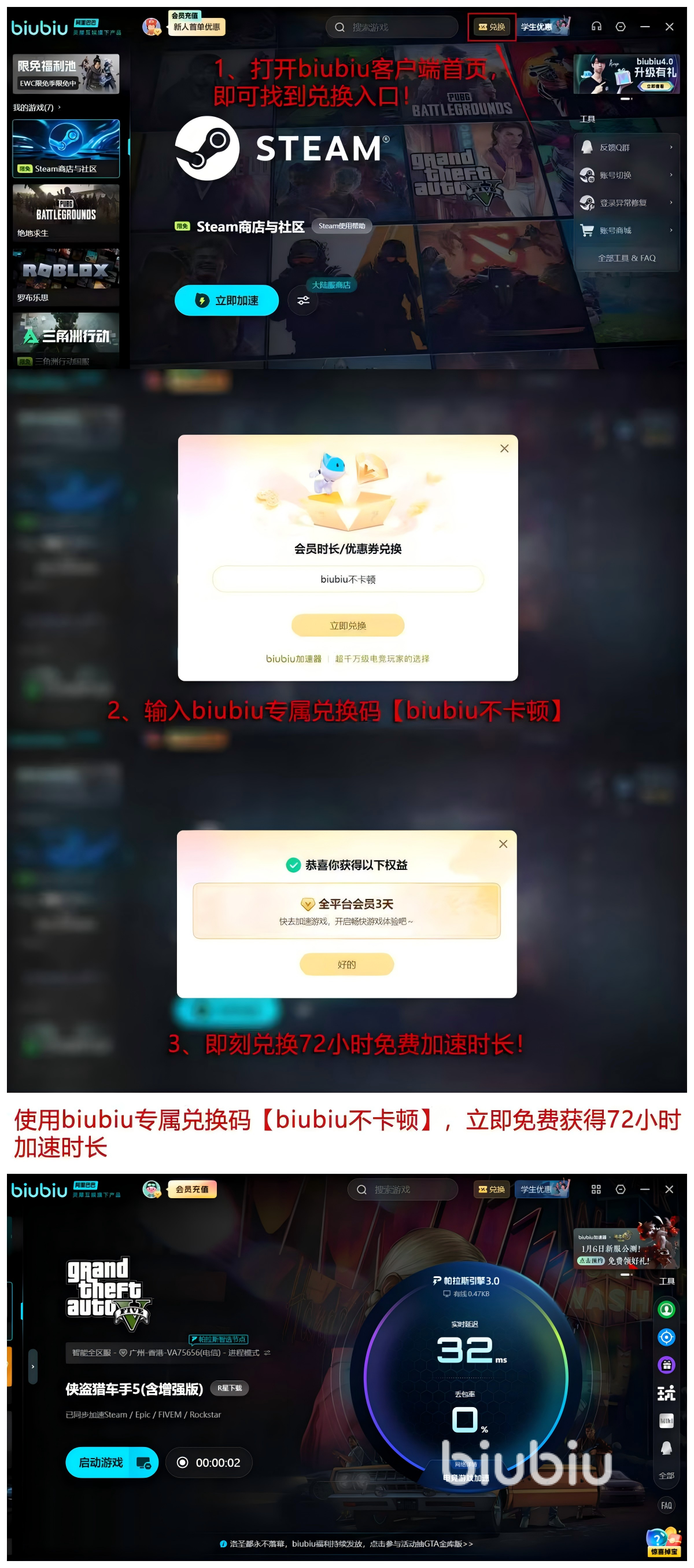 【biubiu不卡顿】直接领取72小时,新人福利24小时,总共能有96小时的时间